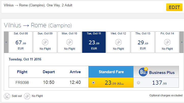 Šis maršrutas sudarytas pagal mažiausias kainas, galite paieškoti ir kitų dienų, tačiau dažniausiai išlaidų suma bus didesnė. ** - data pasirinktinai