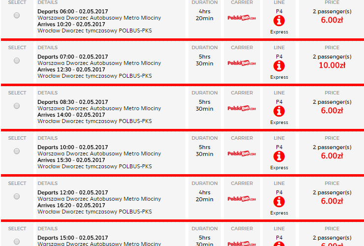 *PolskiBus naujas kalendorius - tai bilietų pardavimo sistema, kai vežėjas pardavinėja bilietus iki tam tikros datos (3-4 mėnesiai į priekį) ir patys pirmieji bilietai būną pigiausiai. Pirmas bilietas autobuse kainuoja 1 PLN, o antro, trečio ir kitų bilietų kainos jau didesnės, o kainų skirtumas priklauso nuo maršruto ir atstumo.
